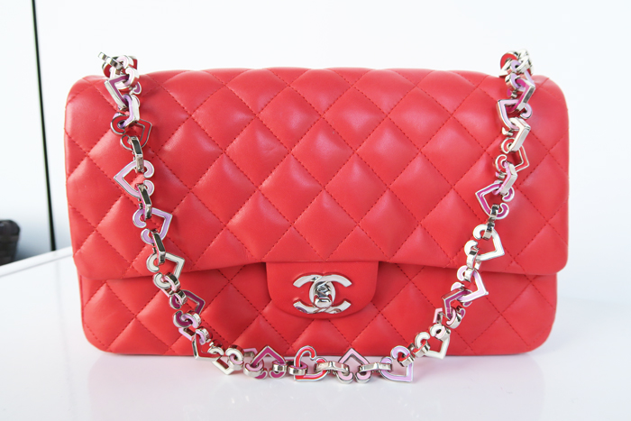 Wow, is that the Chanel Valentine Bag with heart-shaped shoulder chain? Is that the Classic Flap Bag? Really stunning!