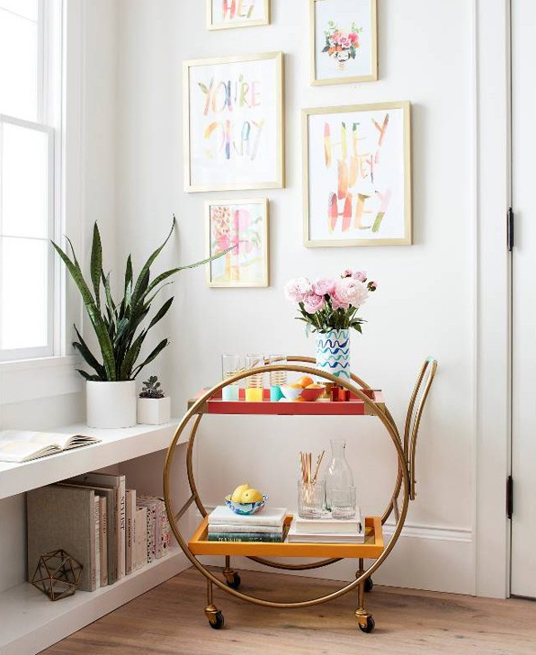 Favourite decor idea (above): I love bar carts (I blame Pinterest for this one) but this circular one is particularly adorable! Whimsy to a whole new level 🙂