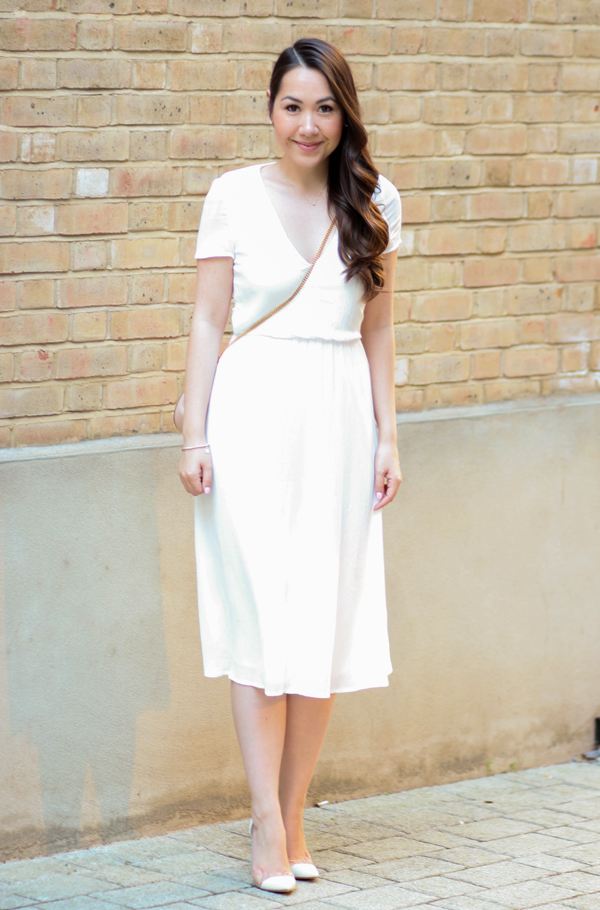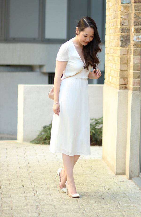 Just as I was ready to pack away my London-summer wardrobe, there was a burst of amazing weather on Sunday (albeit after a day of torrential rain on Saturday haha). I took the opportunity to debut a dress that has been hanging in my closet for a few weeks that I have been itching to wear. I love wearing white and this is the quintessential easy-breezy summer dress. Super comfortable (you gotta love an elasticated waist!) and so easy to dress up or down.