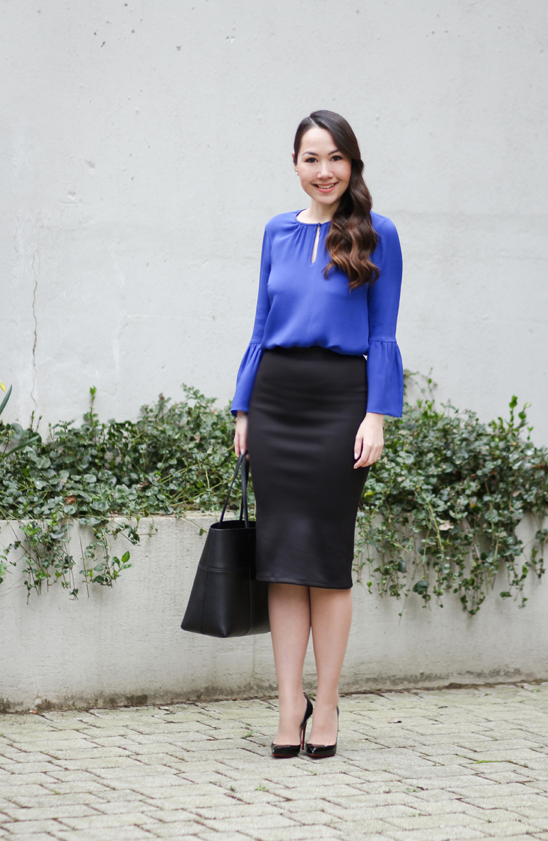Bell Sleeve Blouse // Black Pencil Skirt // Christian Louboutin Pumps // Tory Burch Tote