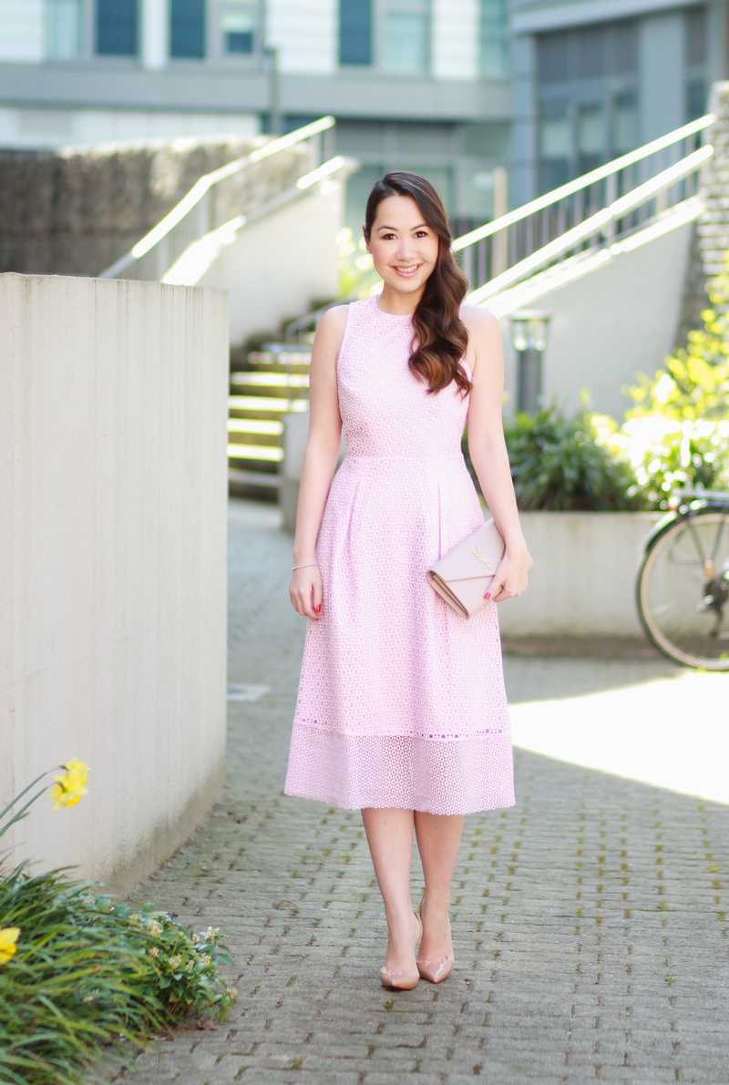 Some days, you’ve just got to dress like a cupcake you know? This was one of those days. I love a midi dress and this dress (currently on sale!) came in the sweetest shade of pink – and when I saw the back, I fell in love even more!
